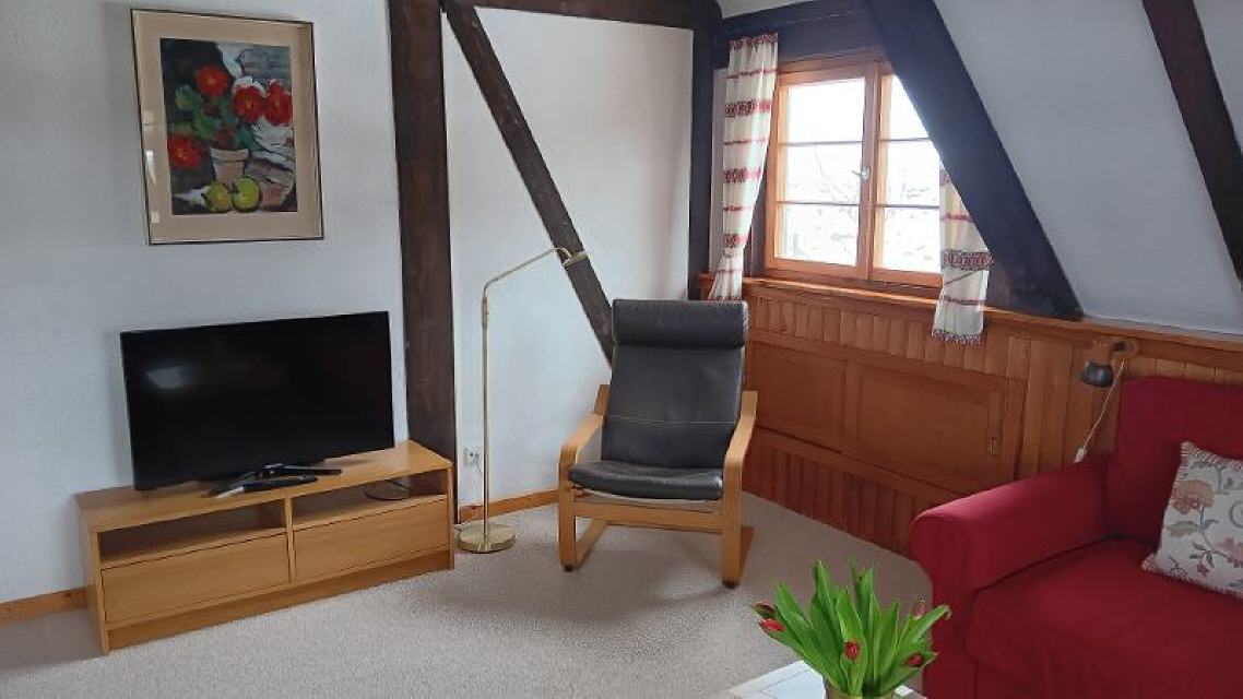 Die Ferienwohnung mit 65 qm befindet sich im Dachgeschoss des Hauses und eignet sich für max. 2 Personen. Sie ist gemütlich im rustikalen Stil eingerichtet.