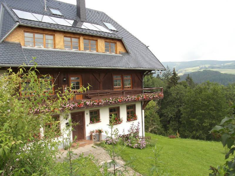 Das Haus Rosenhalde ist ein typisches Schwarzwaldhaus in Einzellage. Vom überdachten Balkon der Ferienwohnung genießen Sie eine herrliche Aussicht über die Schwarzwaldhöhen. Im Garten lädt eine Sonnenterrasse zum Verweilen ein.