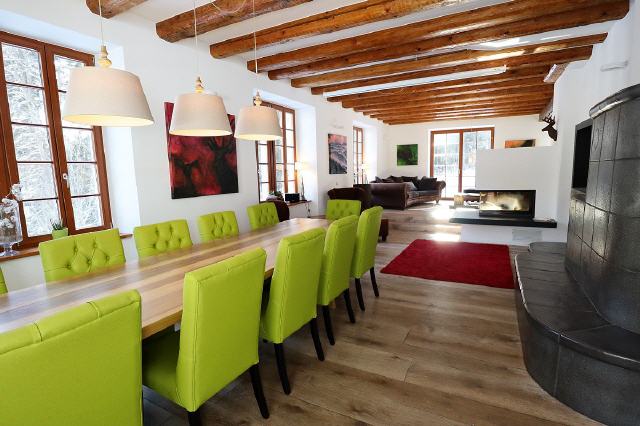 Tretet ein, genießt, entspannt und fühlt Euch wohl und geborgen! Euch erwartet ein Haus der Luxusklasse mit 4 Doppelzimmern und einem Studio für bis zu 5 weitere Personen. Im Erdgeschoss findet Ihr die gemütliche Lounge, eine offene Designer-Küche, den Essbereich mit riesiger Tafel und Kachelofen und einen gläsernen Kamin. Bild antippen!