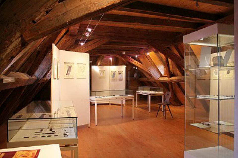 Das Museumsgebäude geht auf die St. Jakobskapelle zurück, die im Dreißigjährigen Krieg vollständig zerstört wurde. Im Jahre 1341 wird an gleicher Stelle eine “obere Kirche oder Kapelle” erwähnt. 110 Jahre später wird von der “Sankt-Jakobs-Kapelle” gesprochen. 1765 wurde das jetzige Gebäude als Schulhaus errichtet und bis in die 60-er Jahre des letzten Jahrhunderts als solches genutzt. 1991 wurde das Gebäude saniert und das Dorfmuseum eingerichtet. Dabei fand man einen Schlussstein mit Jakobsmuschel. Dies lässt darauf schließen, dass der St. Jakobspilgerweg entweder hier durchging oder hier ein Zugang dazu war.