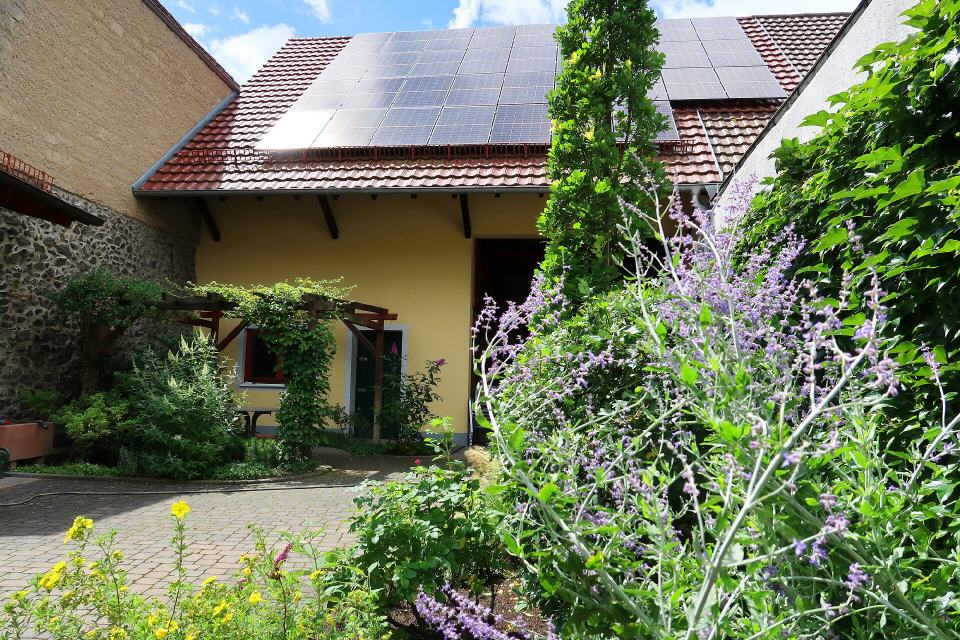 - Parkplätze für zwei Autos und für Fahrräder stehen in der ehemaligen Scheune zur Verfügung.