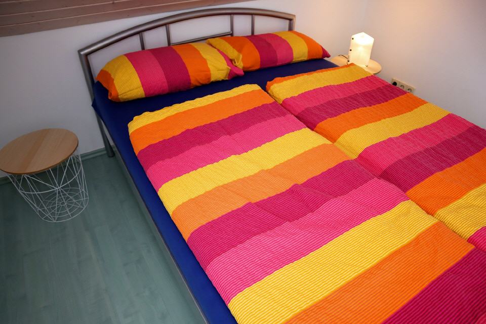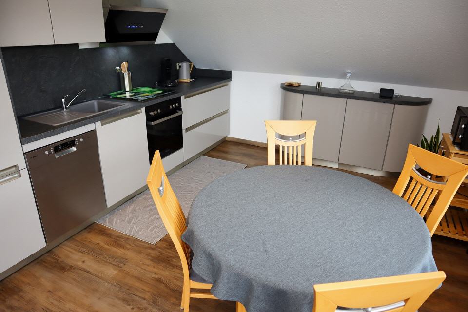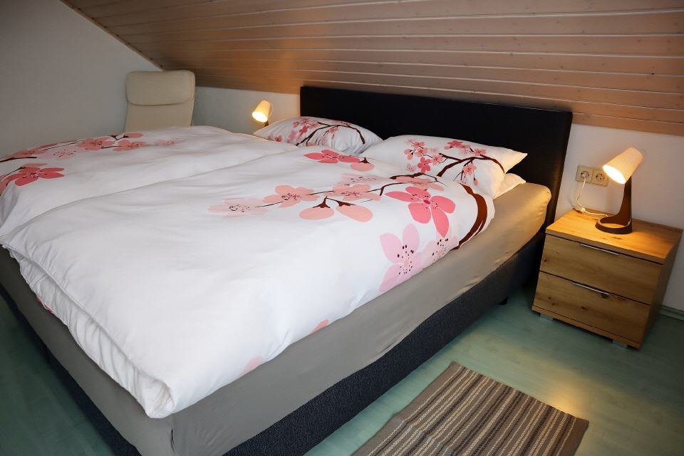 Die Ferienwohnung Kuss liegt im Oberschoss unseres Hauses. Die Nichtraucher-Wohnung für bis 4 Personen hat eine Wohnfläche von etwa 70 Quadratmeter, verfügt über einen Wohn- / Essraum, 2 Schlafzimmer, Bad mit Dusche und einen kleinen Balkon. Die Fewo ist komplett neu und eingerichtet. WLAN ist vorhanden. Mit Rücksicht auf andere Gäste dürfen in der Wohnung keine Haustiere gehalten werden.