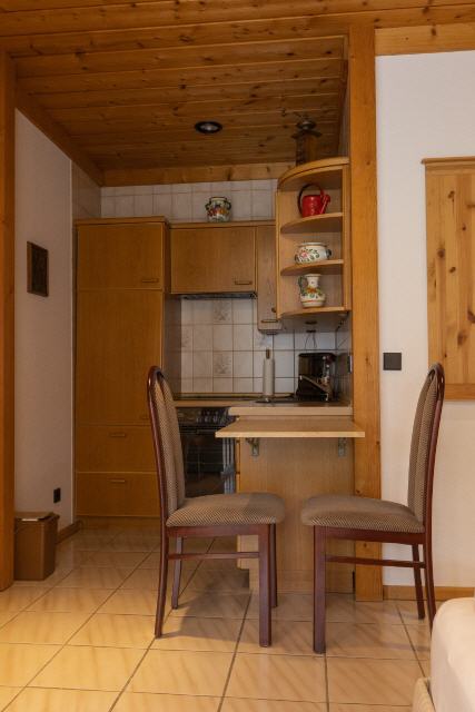 In der voll ausgestatteten Küche können Sie Ihre kulinarischen Fähigkeiten zum Einsatz bringen. Mit einem Herd, Backofen mit integrierter Mikrowelle, Kühlschrank, Kaffeemaschine, Brotschneidemaschine und weiterem nützlichen Zubehör wird jede Mahlzeit zum Vergnügen. Der praktische Klapptisch am Ende der Küchenzeile dient als zusätzliche Arbeitsfläche oder Essplatz.