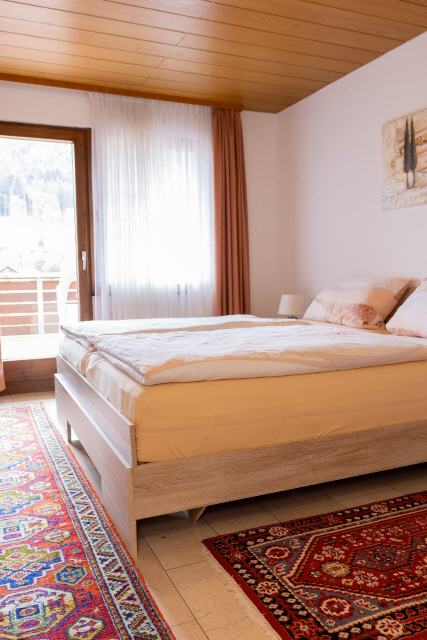 Im geräumigen Schlafzimmer erwartet Sie ein kuscheliges Doppelbett, ein großzügiger Kleiderschrank, eine Kommode und Nachttische, die Ihnen viel Platz und Komfort bieten. Auch von hier aus haben Sie direkten Zugang zur großen Balkonanlage, die den Zauber des Außenbereichs noch näher bringt.