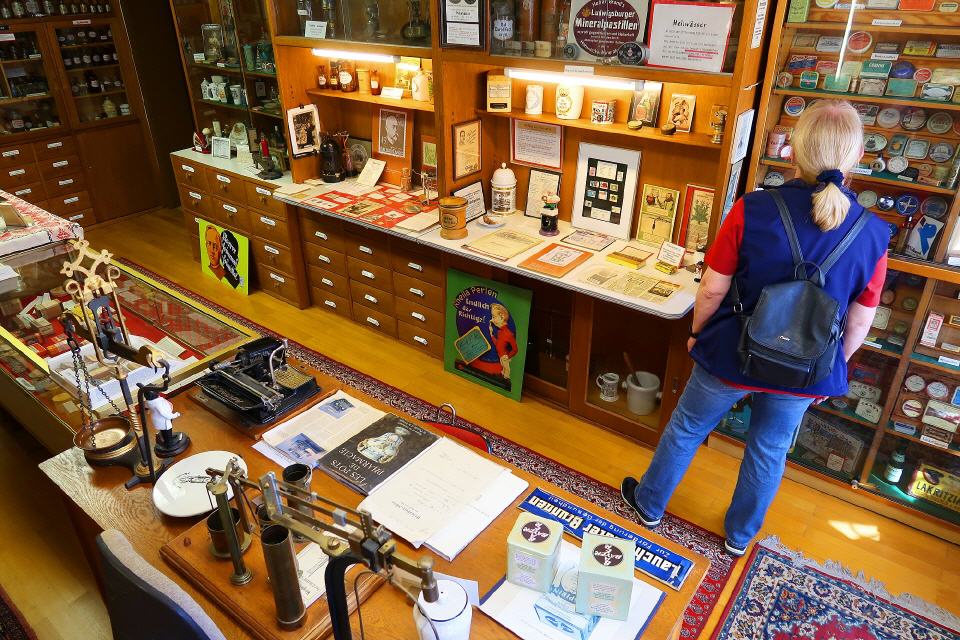 Das Apothekenmuseum ist aus der ehemaligen Rats-Apotheke am Marktplatz hervorgegangen, die bereits 1837 gegründet worden war. 1989 wurde sie in ein Museum umgewandelt. Es ist heute das größte private Apothekenmuseum Europas und präsentiert in der Originaleinrichtung die Geschichte der Apotheke. Die sehenswerte Offizin aus der Biedermeierzeit wird ergänzt durch Einblicke in die Arbeitswelt früherer Apotheker-Generationen im Labor und im Arzneikeller. Eine kombinierte Destillationsanlage stellt sich im Arzneikeller dar. Sie vermittelt gut den ungeheuren Arbeitsaufwand, der früher in Apotheken zur Herstellung von Destillaten, Abkochungen, Aufgüssen und Extrakten nötig war.