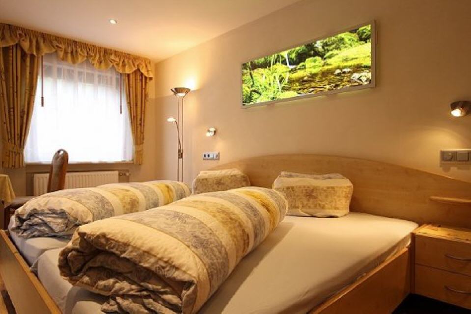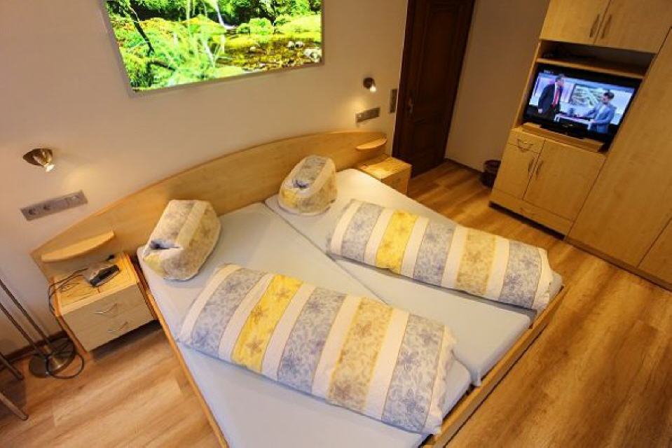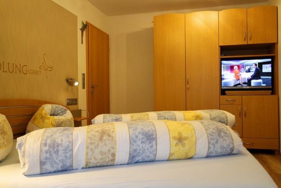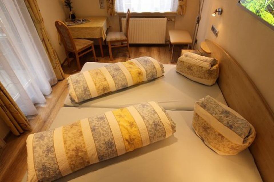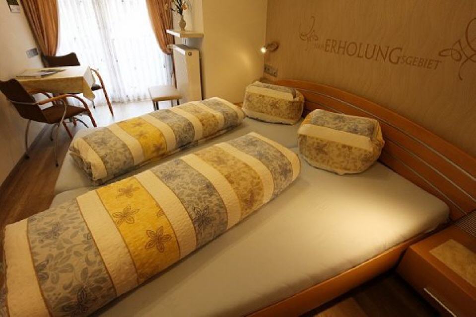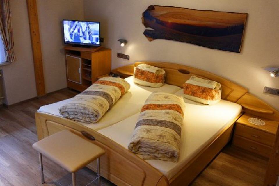 Die modern eingerichteten Doppelzimmer sind neben Dusche und WC, zusätzlich mit Fön, Kosmetikspiegel, TV, Wecker, Gästekühlschrank und Sitzecke ausgestattet. Ein Großteil der Zimmer verfügt über einen möblierten Balkon. Auf Wunsch bieten wir Ihnen auch ein Dreibett- oder Einzelzimmer an. Zudem steht Ihnen kostenloses WLAN zur Verfügung. Im Preis beinhaltet ist ein reichhaltiges Frühstück, die Kurtaxe wird gesondert berechnet.