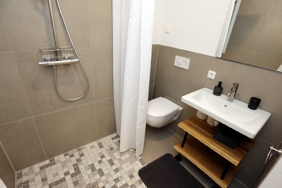 Bad: Dusche, WC, Haartrockner, Toilettenpapier