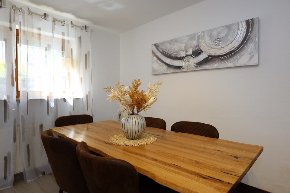 • Das Apartment E mit Terrasse hat eine Wohnfläche von 47 qm, verfügt über Küche, Badezimmer, 2 Schlafzimmer. Die Ferienwohnung mit Gartenblick ist schallisoliert. Die Küche ist voll ausgestattet. Flachbild-TV und kostenfreies WLAN sind selbstverständlich. Die Ferienwohnung hat einen eigenen Eingang.