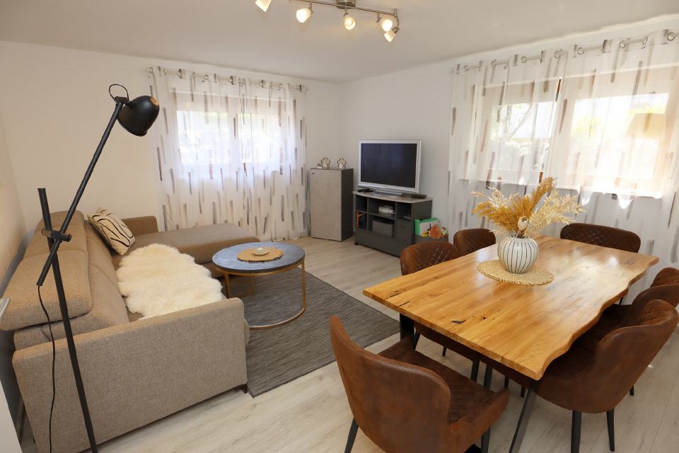 • Das Apartment B mit 2 Schlafzimmern hat eine Wohnfläche von 47 qm, verfügt über Küche, Badezimmer, 2 Schlafzimmer. Die Ferienwohnung mit Gartenblick ist schallisoliert. Die Küche ist voll ausgestattet. Flachbild-TV und kostenfreies WLAN sind selbstverständlich. Die Ferienwohnung hat einen eigenen Eingang.
