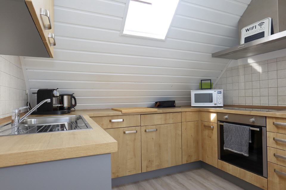 Die Ferienwohnung 2 im Dachgeschoss des Nebenhauses verfügt über Küche, Badezimmer, Wohn- und Schlafzimmer. Die Küche ist voll ausgestattet. Flachbild-TV und kostenfreies WLAN sind selbstverständlich. Die Ferienwohnung hat einen eigenen Eingang.