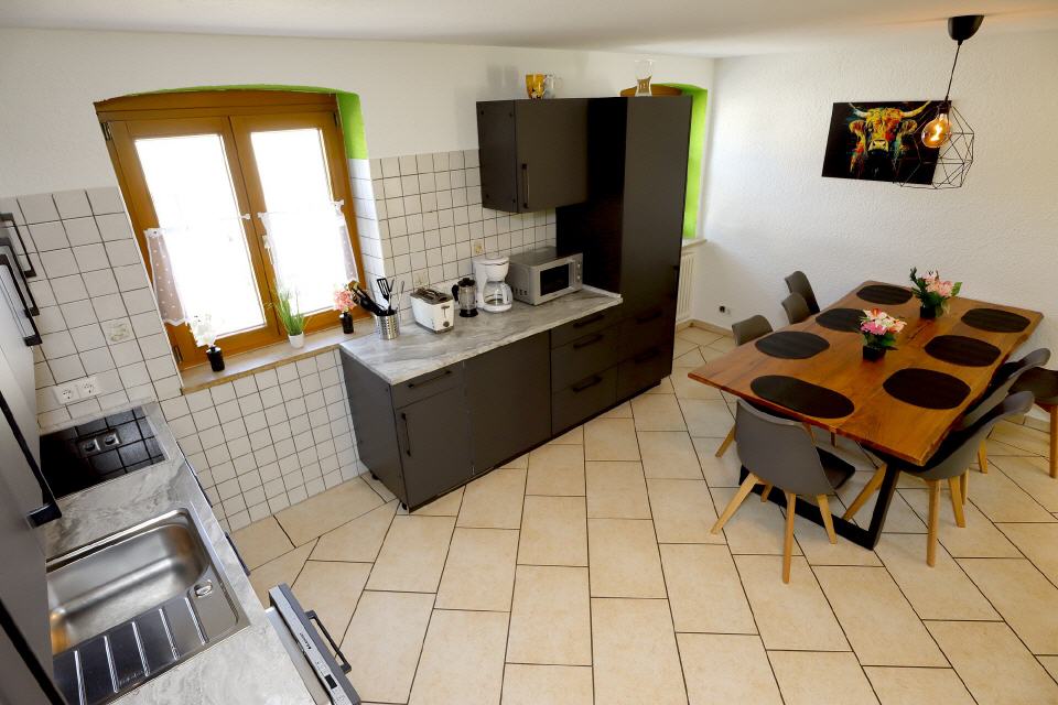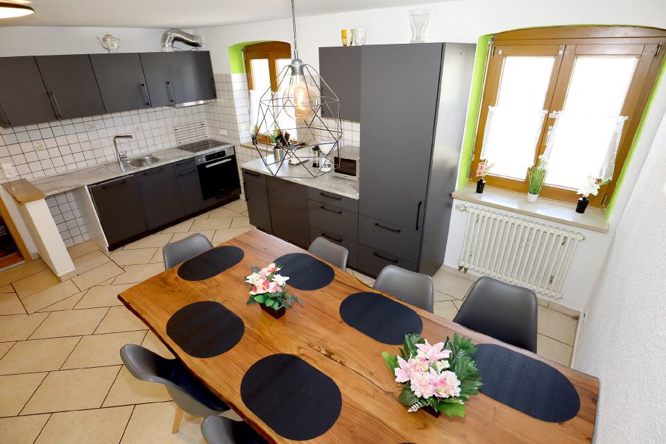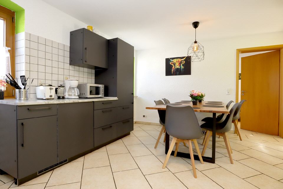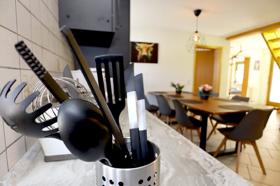 In der großzügigen, voll ausgestatteten Küche wird gemeinsames Kochen zum Vergnügen – ob beim entspannten Frühstück oder beim festlichen Abendessen.