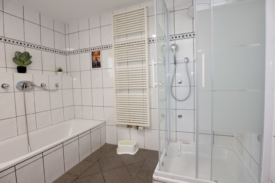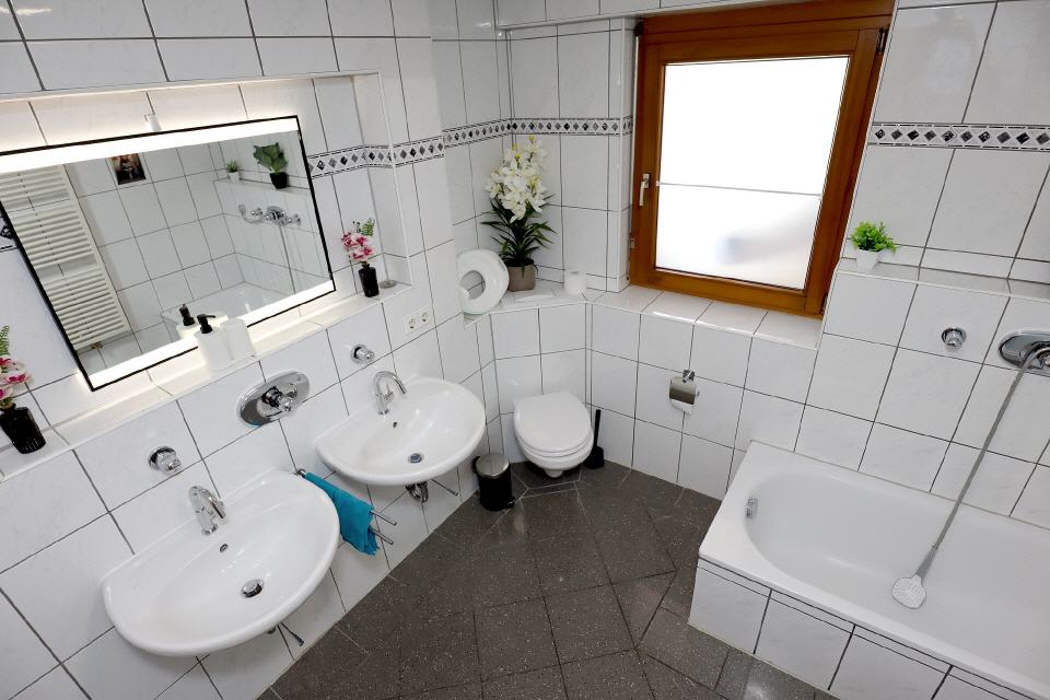• Sanitär: Dusche, Spiegel, WC, Handtücher, Föhn, Waschbecken