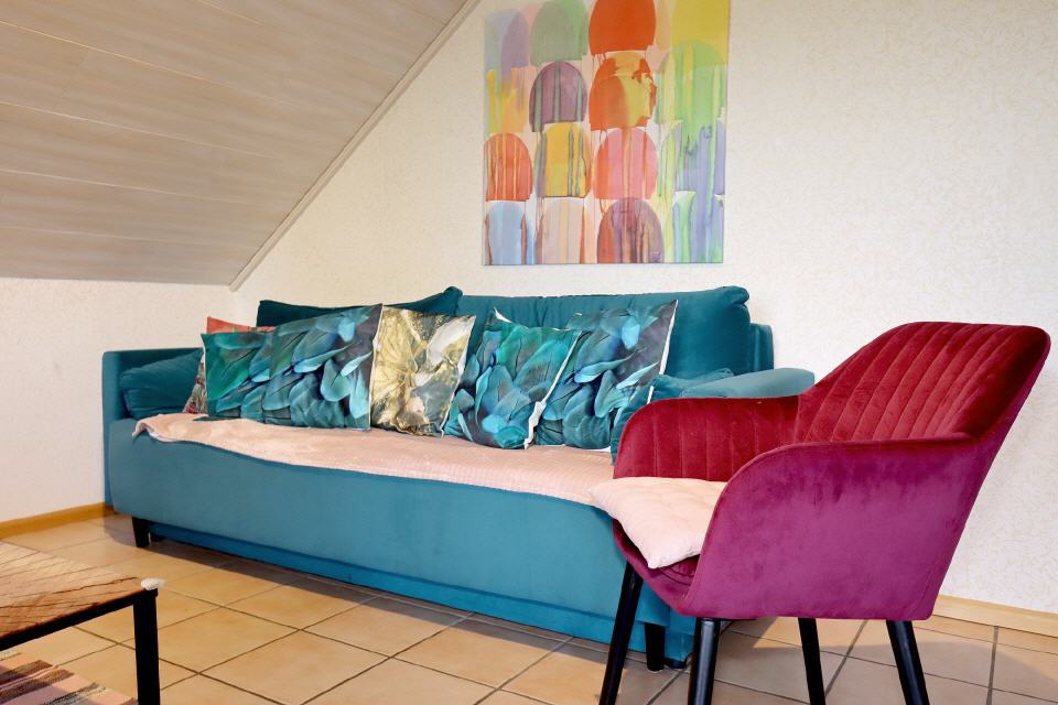 Unsere stilvoll eingerichtete Wohnung bietet Platz für bis zu 8 Personen und sorgt mit einem modernen Badezimmer und einem zusätzlichen Gäste-WC für besonderen Komfort, auch bei größeren Gruppen. Drei gemütliche Schlafzimmer mit Doppelbetten laden zum Träumen ein, wobei eines der Schlafzimmer mit einem zusätzlichen Raum verbunden ist, in dem sich ein Einzelbett befindet – ideal für Familien mit Kindern. Im einladenden Wohnzimmer finden Sie ein weiteres Schlafsofa, das zusätzlichen Platz für Entspannung und erholsame Nächte bietet.