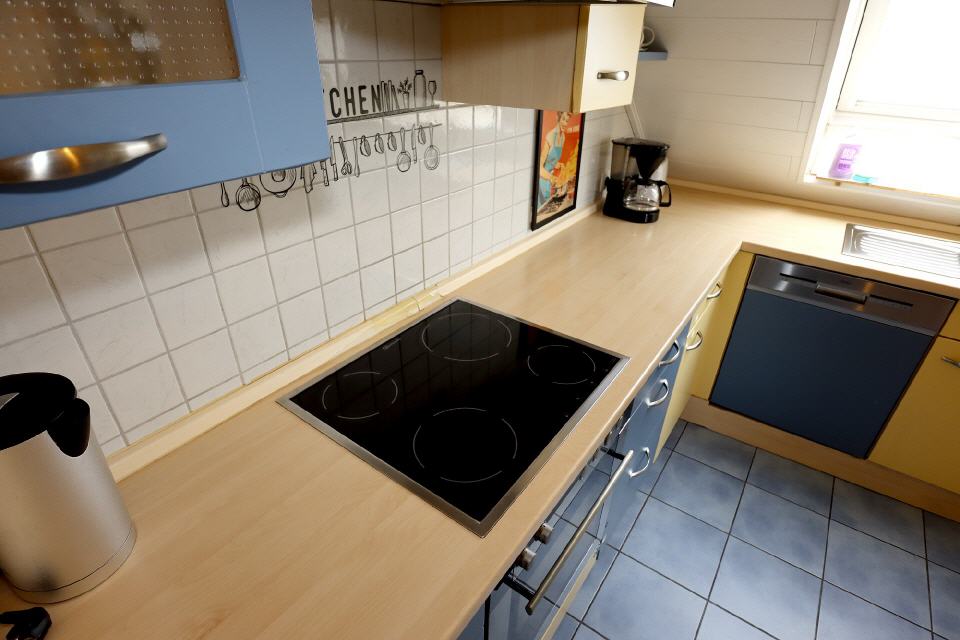 - Küche: Kühlschrank, Herd, Geschirrspüler, Esstisch, Gefrierfach, Kaffeemaschine, Geschirr und Besteck, Küche, Wasserkocher, Küchenzeile, Toaster, Backofen