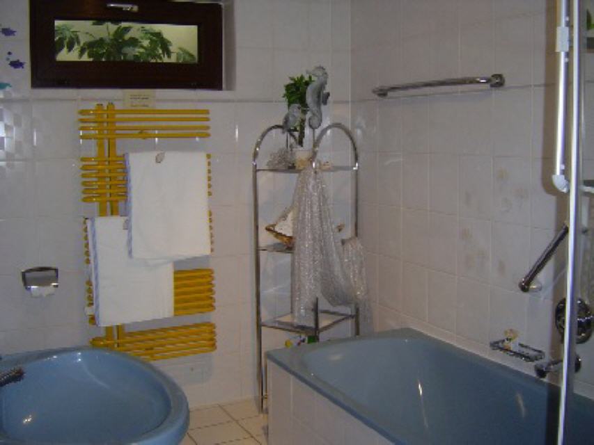 geräumiges Badezimmer mit Wanne, Dusche und WC,