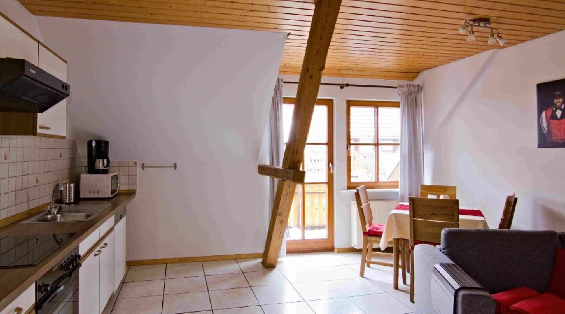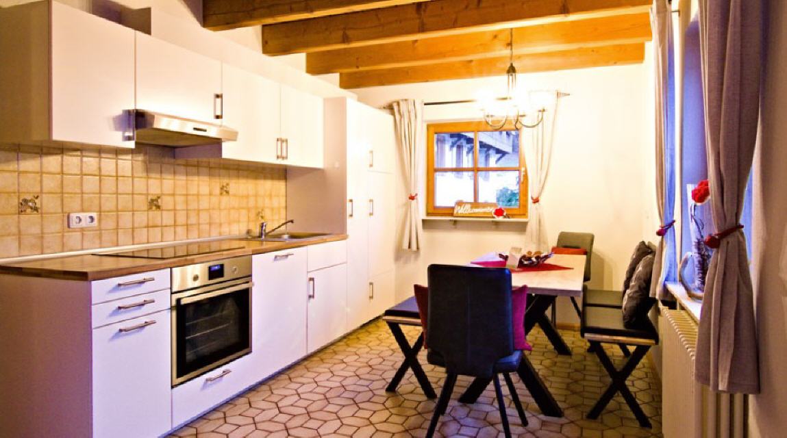 1 Wohnküche mit Küchenzeile, Esstisch und Stühle