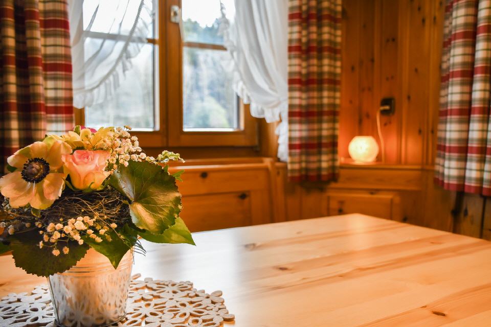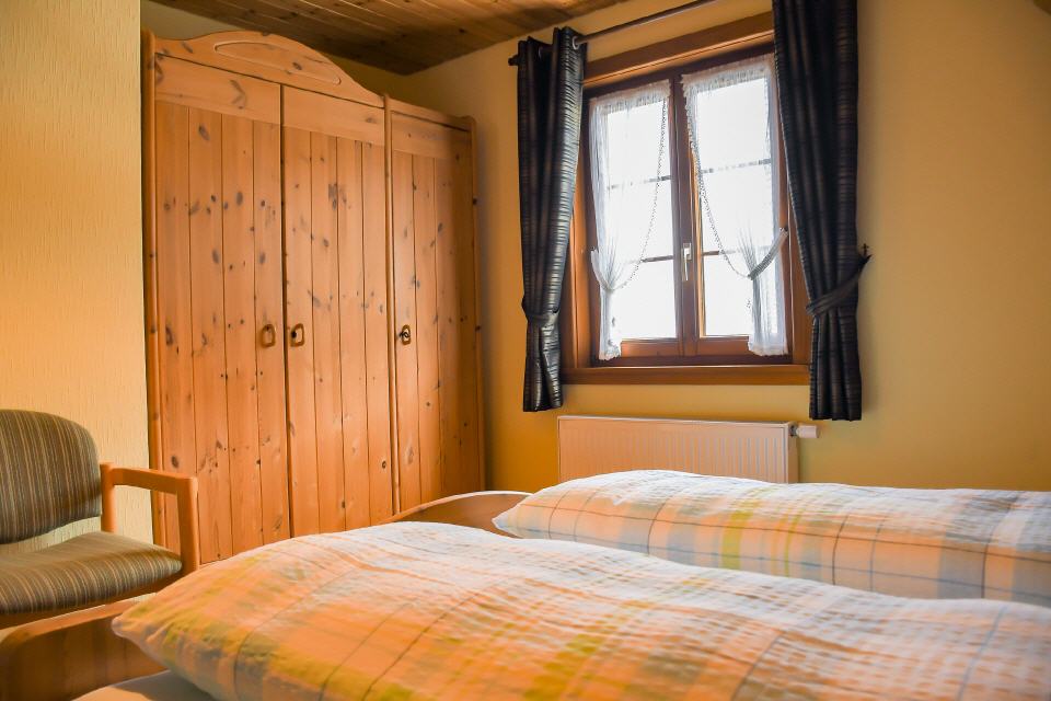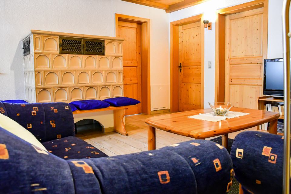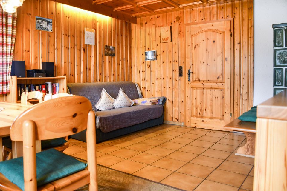 Die Wohnung (Erdgeschoss) ist sehr großzügig angelegt (ca. 70 qm) und bietet Platz für bis zu 4 Personen. Beheizt wird die Wohnung über einen mit Holz befeuerten Kachelofen, welcher der Wohnung eine ganz besondere Atmosphäre verleiht. Die Wohnung besteht besteht aus einem großen Wohnzimmer, Küche, Bad mit Dusche und WC, zwei Doppelzimmer und einem Stockbettzimmer. Zur Wohnung gehört eine Terrasse mit einer Sitzgarnitur, Gartenmöbel sind auch vorhanden. Ein TV-Gerät mit Satellitenanschluss steht zur Verfügung.