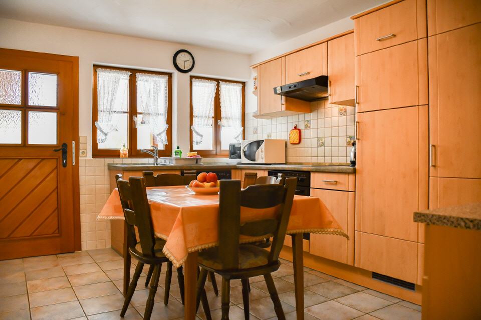 Beide Ferienwohnungen verfügen über ein großzügiges Wohnzimmer, eine Küche mit kompletter Einbauküche und Spülmaschine sowie einer Kaffeemaschine, einem Wasserkocher und einem Toaster. Darüber hinaus sind sie mit SAT-TV und Radio ausgestattet und verfügen jeweils über eine eigene Terasse mit Sitzgarnitur und Gartenmöbeln. Direkt nebenan befindet sich ein neu erbauter Spielplatz. Lauschige Atmosphäre ist in beiden Wohnungen durch einen mit Holz befeuerten Kachelofen garantiert! Im Haus befindet sich eine Zentralheizung. Bettwäsche und Handtücher sind inclusive, Zustellbett möglich.