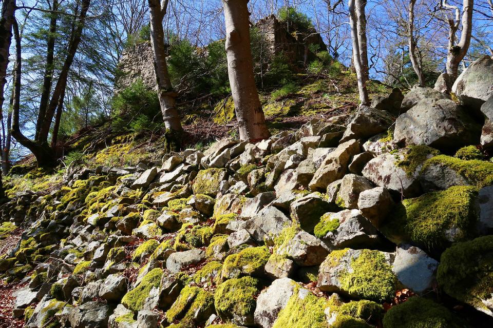 Viel ist von der einstigen Burg, die den Eingangs ins Höllental bewachte, nicht mehr übrig. Dennoch hatte die Burg Falkenstein am Ausgang des schroffen Tales bei der heutigen Gemeinde Buchenbach im Dreisamtal große Bedeutung. Jahrhundertelang hieß das Höllental übrigens nach dem Geschlecht der Adligen: Falkensteiner Tal. Unweit der Burg bestand eine zweite und weniger bekannte Anlage: Burg Bubenstein. Der vergessene, alte 2-Burgen-Rundweg hat es in sich und belohnt mit einer fantastischen Sicht hinunter ins felsige Höllental.