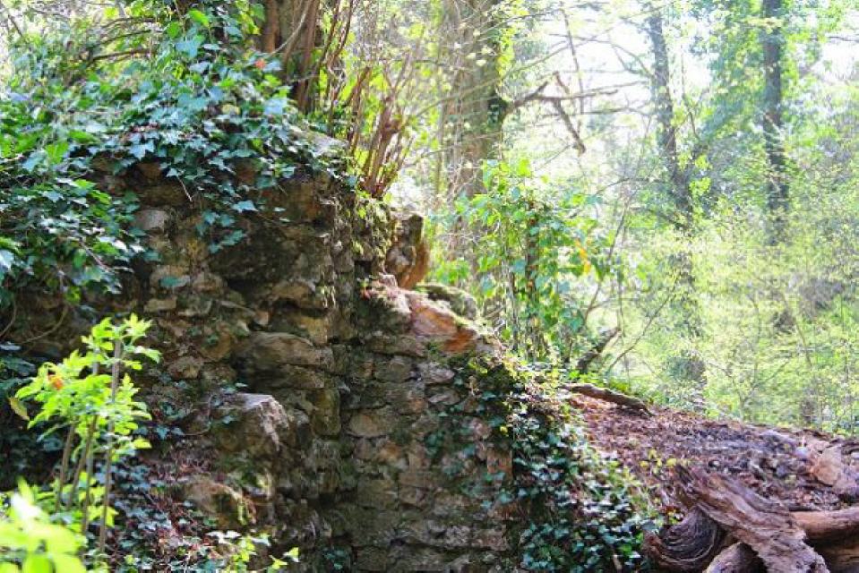 Zuletzt bietet der Steinpfad eine weitere Attraktion, die nicht unerwähnt bleiben sollte: die Überreste der Burg Hauenfels (Station 9) , wo Ritter und Mönche wohnten und Räuber hausten. Die kleine Ruine liegt sich an den östlichen Felshängen des Ölberges zwischen den Steinzeithöhlen. Ihre Geschichte ist weitgehend unerforscht. Gerätselt wird, ob es sich bei dem festen Bauwerk überhaupt um eine Burganlage handelt. Eine mögliche Ersterwähnung als „Huwensteine“ in einer Urkunde des Klosters St. Ulrich ist auf das Jahr 1316 datiert. Funde von der Burgstelle deuten auf einen Nutzungszeitraum vom 13. bis ins frühe 16. Jahrhundert hin. Die Burg, die nahegelegene Felsenmühle und der Weiler Gütighofen dürften eine kleine Wirtschaftseinheit im Mittelalter gebildet haben.