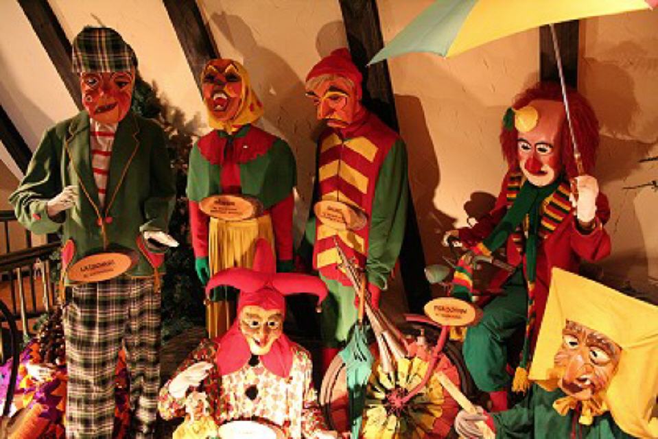 Im dritten Obergeschoss findet man die Vogtei Dreiländereck aus unserer Grenzregion zur Schweiz und dem Elsass. Ein bisschen erinnert man sich beim Betrachten an die Basler Fasnacht, wenn man die “Waggis” oder andere Narren aus dieser Landschaft sieht.