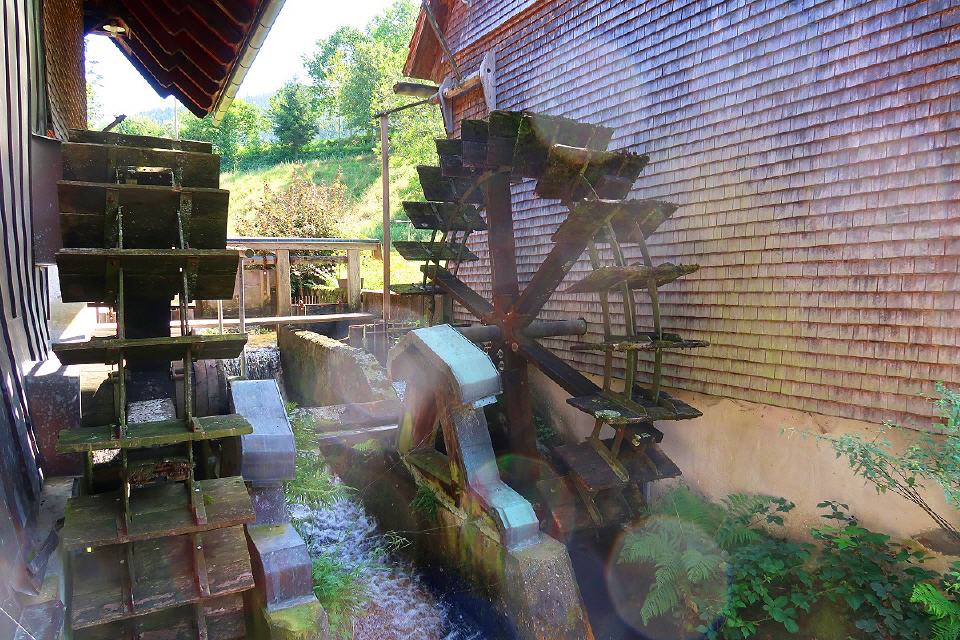 Angetrieben wird die Mühle durch ein unterschlächtiges Wasserrad. Geölt wurden taleigene Früchte, vor allem Raps, Mohn, Walnüsse und Buchenkerne. Die Ölfrüchte durchliefen oft mehrere Pressungen, wie es heute bei Oliven üblich ist. Die Trotte war ebenso bedeutend wie die Mühle, weil bis vor 100 Jahren im Simonswäldertal intensiv Weinbau betrieben wurde. Dem Rebanbau folgte der Obstanbau, statt Wein wurde nun Most hergestellt.