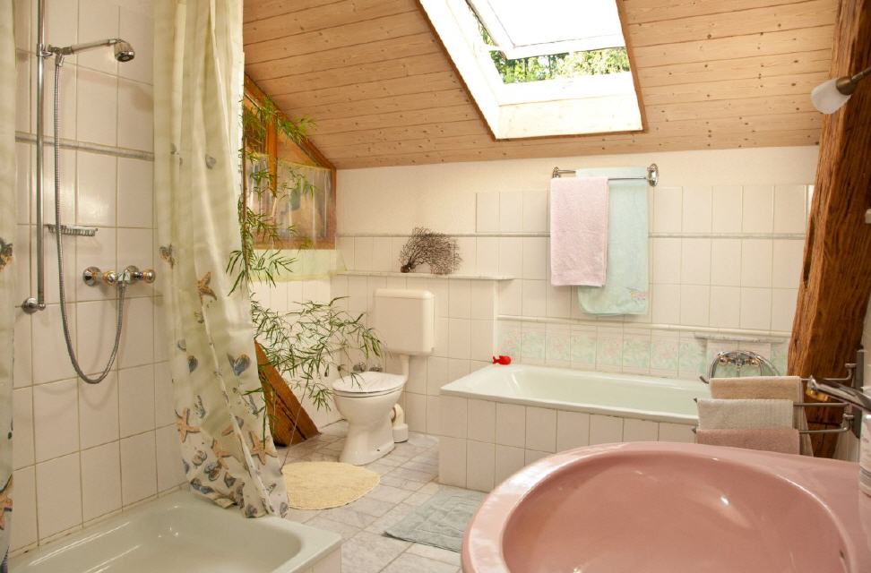 Details und Ausstattung: Liebevoll renovierte alte Balken sowie die Küchen und Möbel aus Vollholz prägen unsere Nichtraucherwohnung.