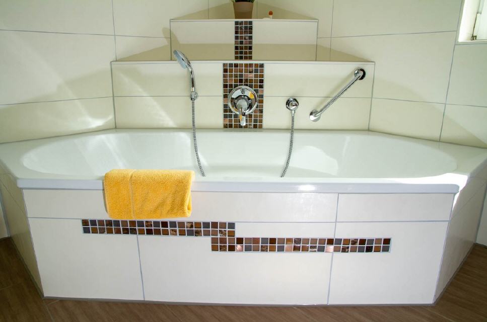• Wohlfühlbad mit Eckbadewanne, große Dusche, WC, Waschbecken