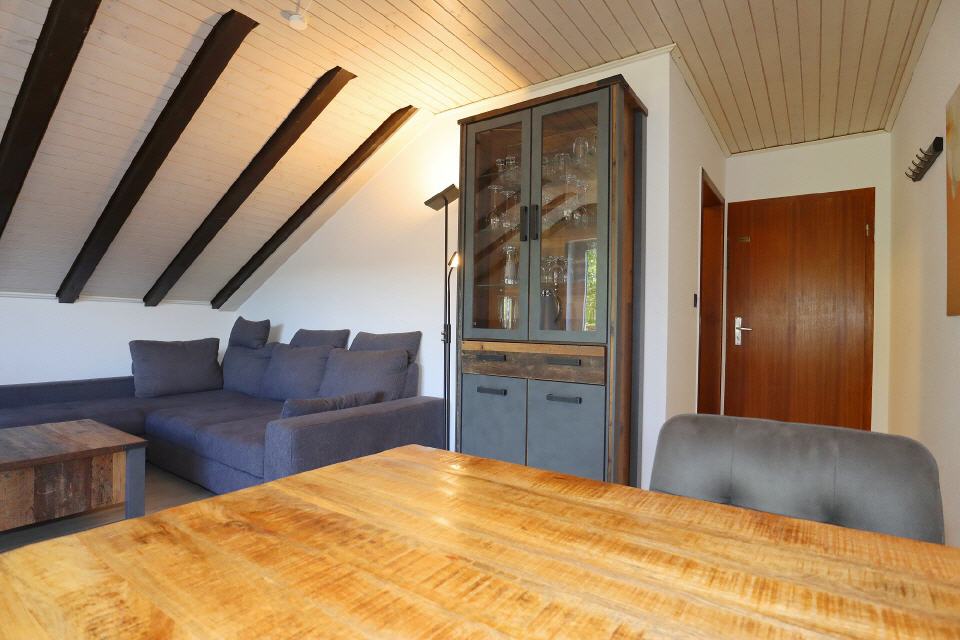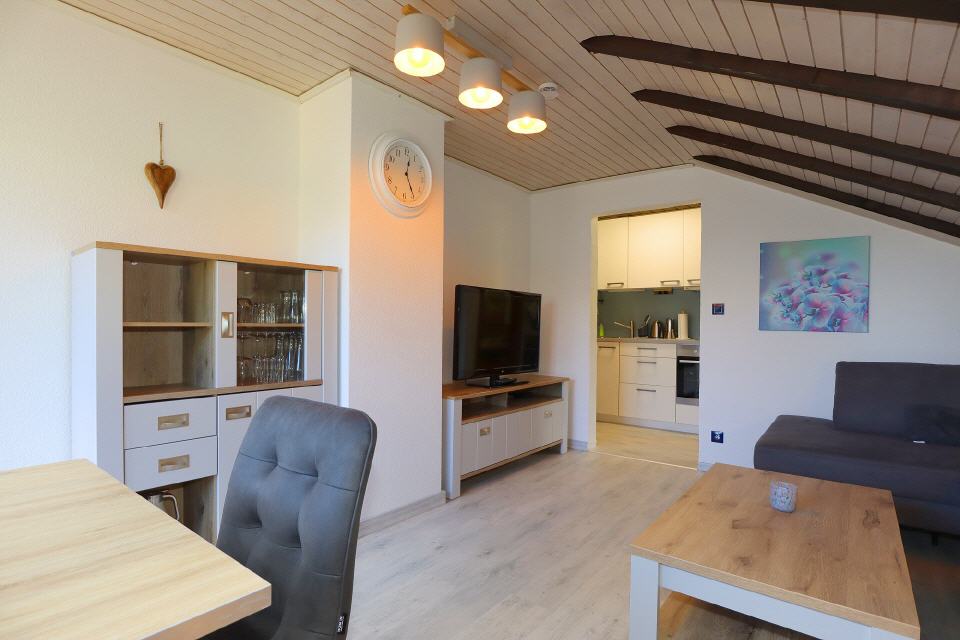 Wohnen: voll ausgestattete Küche, Badezimmer mit Dusche / WC, Wohnbereich mit Esstisch, SAT-TV, WLAN