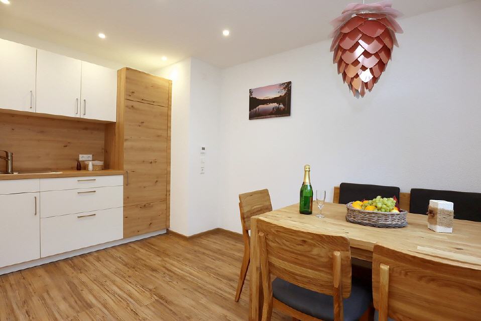 Das "Tannenzäpfle" ist unser Appartements für "zwischendrin". Es hat eine Wohnfläche von ca. 32 qm und ist damit größer als ein Hotelzimmer und kleiner als unsere großen Feriensuiten. Die Ferienwohnung verfügt über zwei Zimmer (Schlafzimmer und Wohn-Esszimmer). Es ist ideal für Gäste, die im eigenen Appartement frühstücken möchten oder sich abends selbst mal etwas warm machen wollen. Preis: ab 99 Euro pro Nacht (inklusive Endreinigung).