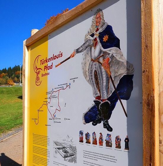 Lufwig Wilhelm von Baden-Baden, auch als Türkenlouis bekannt, wurde am 8. April 1655 in Paris geboren, starb am 4. Januar 1707 in Rastatt). Der badische Markgraf war Generalleutnant aller kaiserlichen Truppen und ein siegreicher Feldherr in den Türkenkriegen. Schon früh machte er Karriere in der kaiserslichen Armee. Doch während er für den Kaiser immer wieder in Schlachten zog, wurden seine Besitzungen in Baden von den Franzoschen zerstört, darunter auch sein Stammsitz in Baden-Baden. Später verlegte er diesen nach Rastatt. Die Auseinandersetzungen mit dem Königreich Frankreich waren die Ursache für den Bau einer riesigen Verteidigungsanlage auf den Höhen des Schwarzwaldes. Bei der Schlacht am Schallenberg im Juli 1704 erlitt er eine Wunde, die nie wieder verheilen sollte. Jahre später starb er an den Folgen der Verwundung.