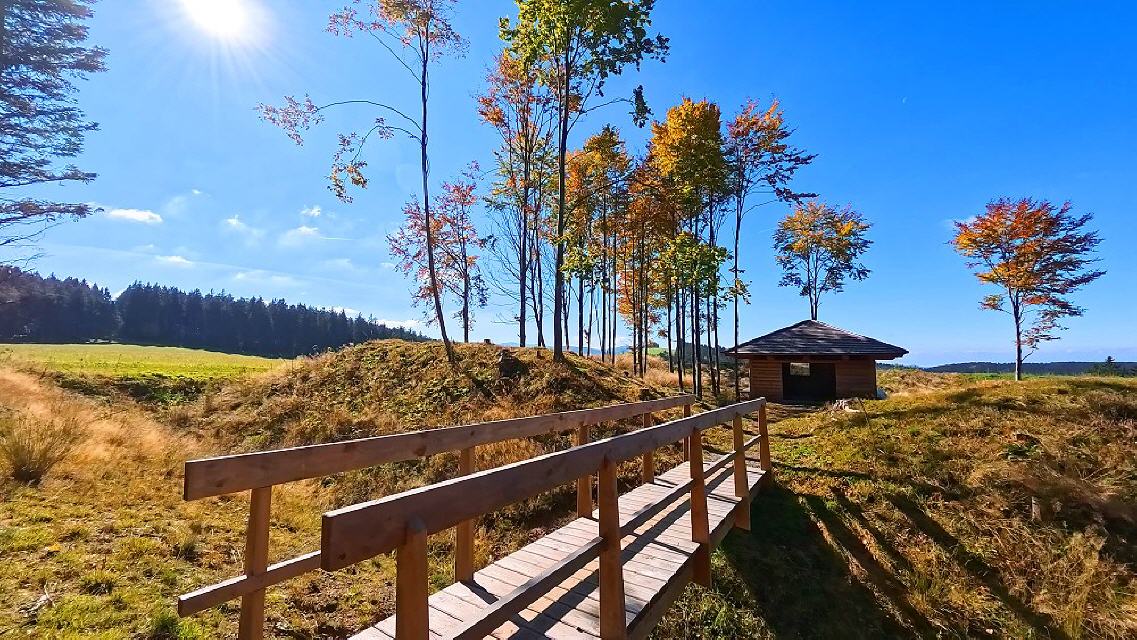 Start des Rundwanderweges ist im Breitnauer Ortskern beim Parkplatz hinter der Kirche. Am 20. Februar 1690 wurde das Dorf von französischen Soldaten überfallen, zwei Jahre nach dem Beginn der Schanzarbeiten. Dabei wurden der Pfarrhof sowie 14 Bauernhöfe niedergebrannt. Von hier aus führt der Pfad hoch zum Roßkopf und weiter zum Oberen Fahrenberg. Dort bietet sich ein grandioser Blick über Breitnauer Täler mit ihren Wiesen und Wäldern, aber auch über die Rheinebene hinweig zu den Vogesen. Wir folgen dem lausgeschilderten Naturpfad über eine Wiese, genießen den Blick hinüber nach St. Märgen und St. Peter sowie zum Kandel. Wir folgen den Hinweisschildern und gelangen zum Naturfreundehaus und zur Ringelschanze. Hier handelt es sich um eine beeindruckende Viereckschanze, die in ihrer Mitte sogar eine Schutzhütte (Blockhaus) aufweist. Nach einer kurzen Rast geht's den Hinweisschildern folgend weiter in Richtung Süden und in die Dorfmitte zurück.