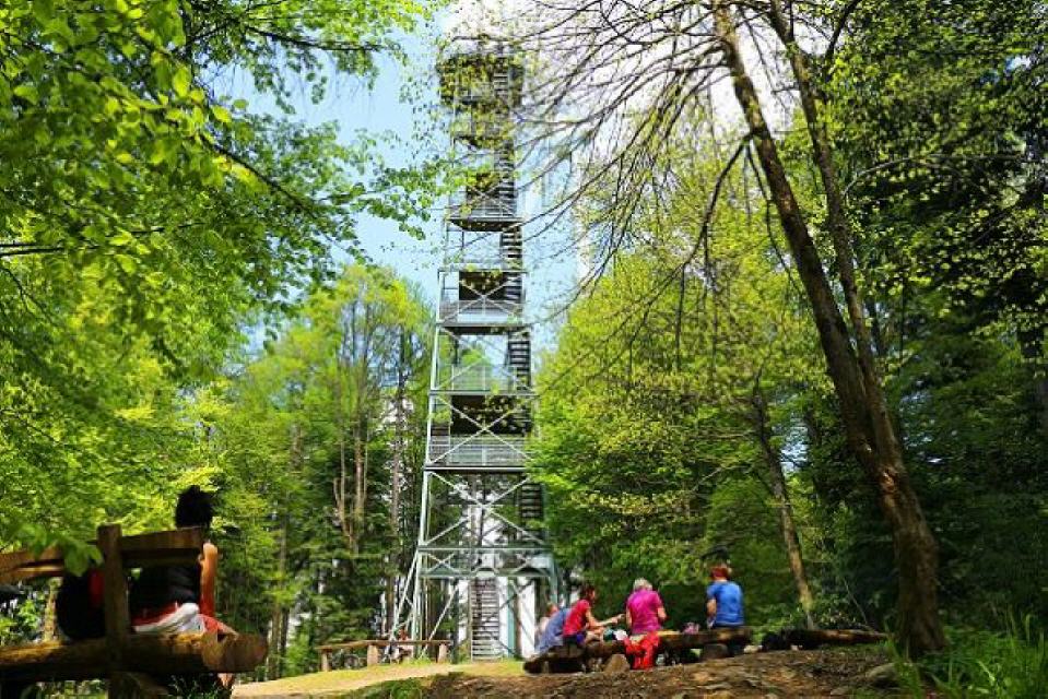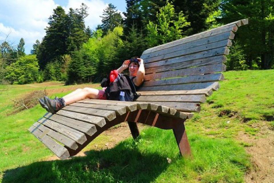 Von hier ab gehen wir, stets der Kandelhöhenweg-Markierung folgend, an Viehweiden entlang und durch kleinere Buchen- und Fichtenwälder hinauf zur Bergspitze. Der Kandel ist ein sehr beliebtes Ausflugsziel und bietet uns fantastische Fernsichten in die Rheinebene, zum Kaiserstuhl und zu den Vogesen.