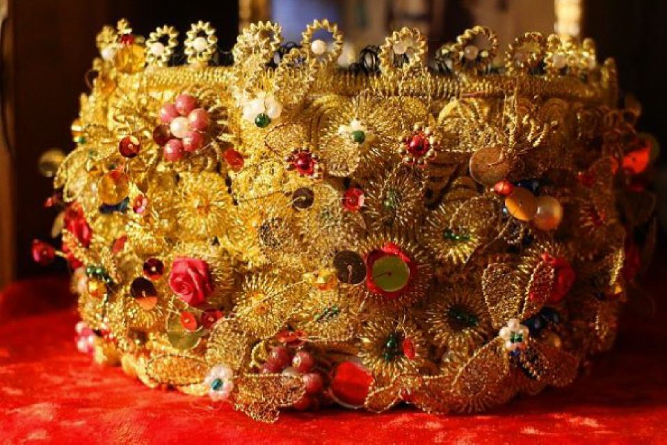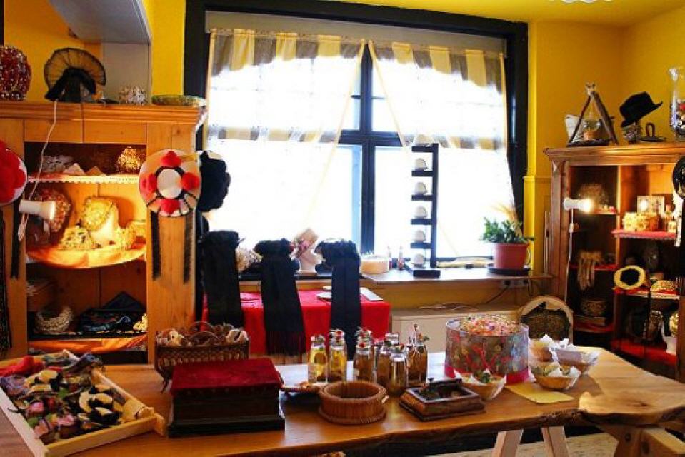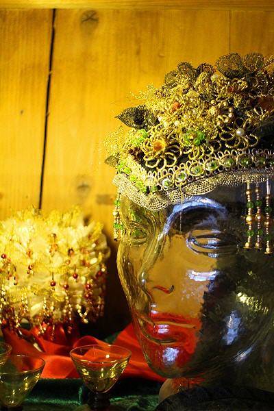Ein Blick in die weiteren Räume verrät, auf was Helga Reichenbach spezialisiert ist. In den Schränken und auf den Truhen und Tischen sind zahllose Trachten, Brautkronen, Schäppel und Käppchen zu sehen.