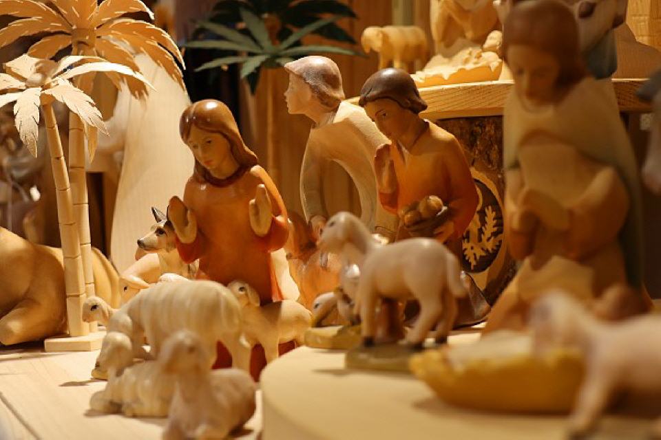 Besucher finden eine reiche Auswahl handverlesener Krippen in vielen Formen und Varianten vor, darunter traditionelle Krippen mit Figuren, naturbelasseneund minimalistisch geschnitzte Krippen oder detailgetreu ausgestattete und aufwändig verarbeitete.