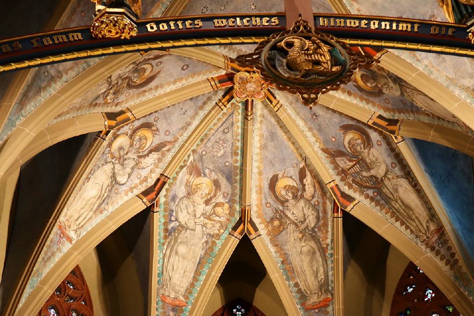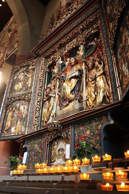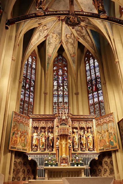 Der ebenfalls im spätgotischen Stil erbaute Innenraum des Münsters hat im Mittelschiff eine Höhe von 18 Metern. Das Münster beherbergt drei geschnitzte Altäre aus den Jahren 1903, 1906 und 1911. Im Inneren fallen die sich an den Verbindungslinien der Pfeiler befindenden Fresken von Heiligen auf. Das Deckengemälde des Chors stammt von Carl Philipp Schilling. Die großen, mit gotischen Malereien verzierten Fenster sind jeweils mit dem Namen ihres Stifters versehen. Für die Innenausstattung des Münsters wurden insgesamt 300.000 Mark ausgegeben, davon waren 75 Przent Spenden.