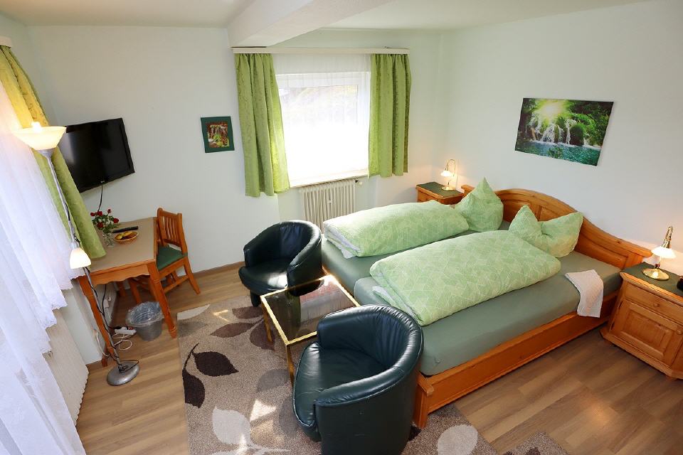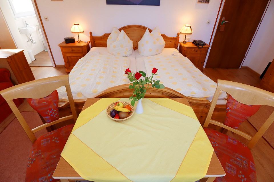 13 gemütlich, individuell eingerichtete Zimmer mit Sitzecke, Kabel-TV, Radiowecker, Dusche/WC, Minibar und WLAN. Zimmer größtenteils mit Balkon oder Privat-Terrasse. Von unseren Balkon- oder Terrassenzimmern genießen Sie eine wunderschöne Aussicht mit Blick auf Wiesen und Wälder.