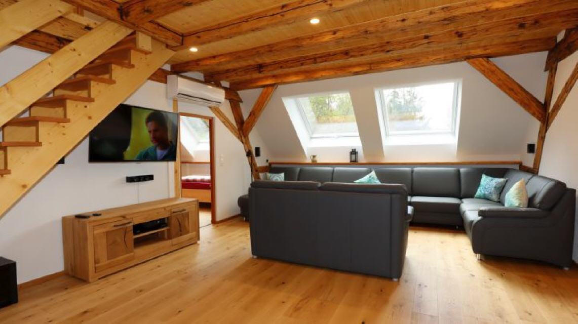 Fürstliches Gutshaus: Das ehemalige fürstliche Gutshaus ist liebevoll restauriert und bietet dir rustikales Ambiete mit viel Holz aber auch allen neuzeitlichen Komfort und Luxus. Das stattliche Haus hat viel Platz für große Familientreffen oder gemeinsame Ferien mit Freunden.