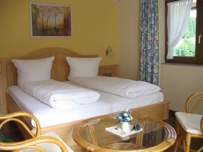 Die Zimmer sind geräumig und gemütlich eingerichtet mit massiven Holzmöbeln, Sitzecke mit TV, Bad mit Dusche und WC, sowie Balkon. Morgens erwarten wir Sie am reichlich gedecktem Frühstückstisch mit Brot, Brötchen und allem was dazu gehört. Ergänzend gibt es ein Büffet mit Müslis, Körner, frischem Obstsalat und Joghurt. Hier steht einem gesunden Start in den Tag nichts mehr im Wege! Abends verwöhnen wir Sie gerne mit einem abwechslungsreichen Menü mit drei Gängen (Halbpension)