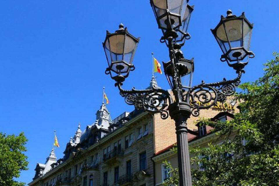 Gleich neben der Stiftskirche beginnt das Bäderviertel. Mit dem traditionsreichen Friedrichsbad in seiner ganzen Pracht der „Belle Epoque“.