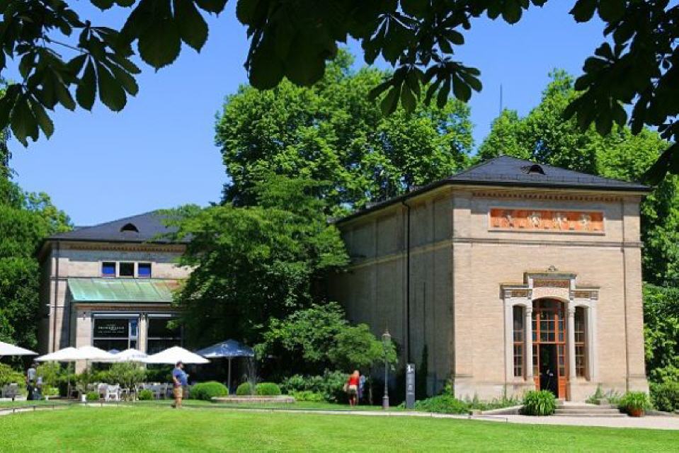Vom Kurgarten erstreckt sich in einem Bogen längs der Oos die Kaiserallee. An ihr liegt hinter riesigen Platanen die Trinkhalle. Ein Hauch von südlichem Flair überkommt den Besucher beim Anblick dieses Gebäudes. Der Zauber von Licht und Schatten gibt dem 9o Meter langen Wandelgang mit den korinthischen Säulen und den 14 großflächigen Wandgemälden badischer Sagen zu jeder Jahreszeit seine vollendete besondere Schönheit.