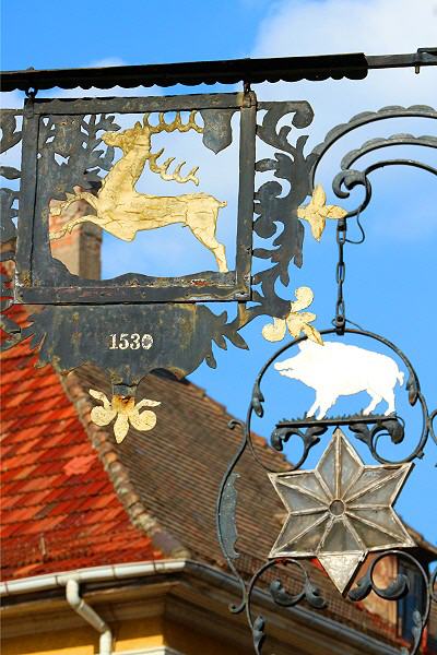 Historische Fachwerkhäuser und Bauten aus der Gründerzeit (1870) umgeben die Hofstätte, den zentralen Platz zwischen den ersten Ansiedlungen von Markt- und Kirchdorf, sowie den mittelalterlichen Vorstädten „Gaß“ und „Waldbach“. Hier reihten sich bis zu sechs Gasthäuser, wovon der Hirsch und die Traube zu den ältesten noch bestehenden gehören. 1387 müssen sich die Grafen von Eberstein die Herrschaft über die Stadt mit den Markgrafen von Baden teilen, woran der 1511 errichtete Kondominatsbrunnen erinnert.