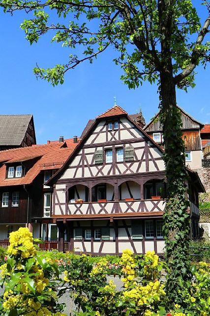 Auf die Stadtmauer aufgesetzt erheben sich zwei mächtige Zehntspeicher. 1764 und 1784 neu erbaut, gehen sie aber auf das 16. Jahrhundert zurück. Ihre Verwendung gab ihnen den Namen: zur Abgabe und Lagerung des Großen Zehnten (Feldfrüchte) für die Herrschaft. Von hier zweigt die Ebersteingasse ab und lenkt die Schritte auf den so genannten „Hof“, das historisch frühere Kirchdorf.