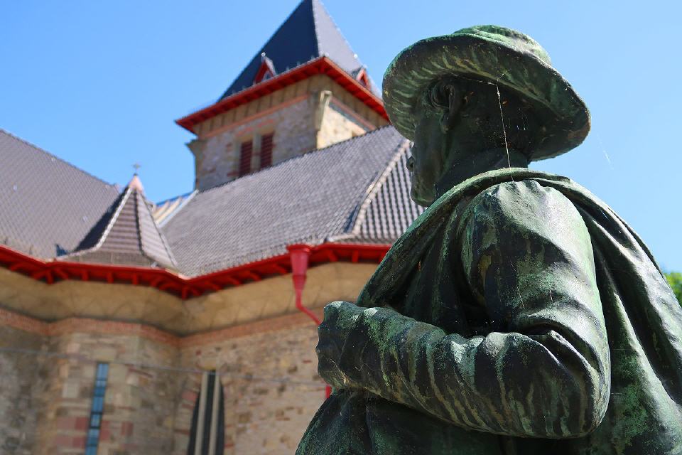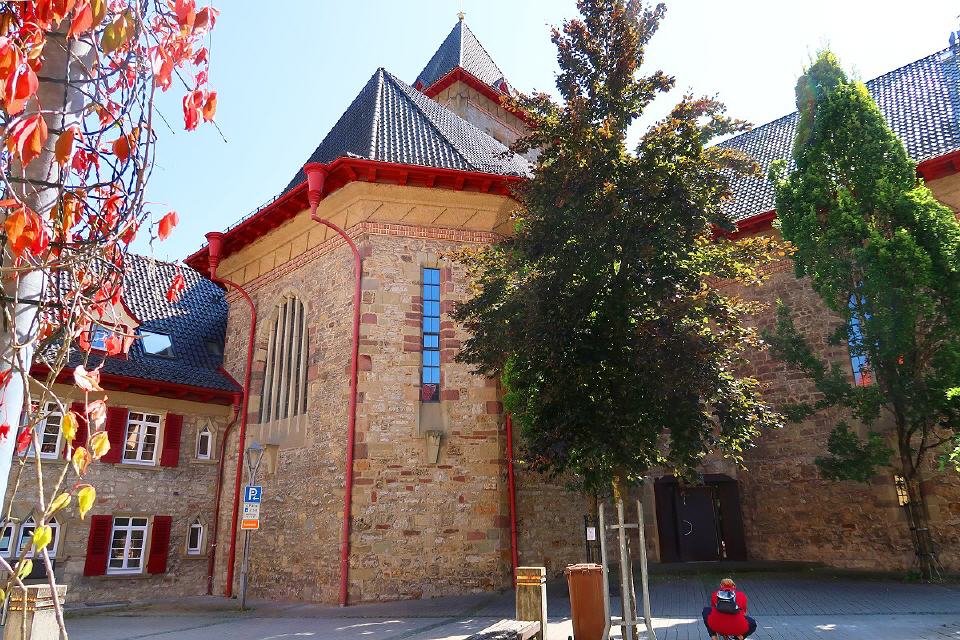 Bevor man sich dem Alten Rathaus nähert, lohnt ein Blick hinauf zur Bergkapelle oben auf dem Lindenhof, die Paul Mauser 1910 als Ersatz für die Bitzekapelle stiftete. Die klassizistische Rundkapelle wurde von Baumeister Wilhelm Rohr nach einem Entwurf von Prof. W.P. Laur errichtet. Sie weist eine ungefasste Kreuzigungsgruppe von strenger Bildlichkeit auf.