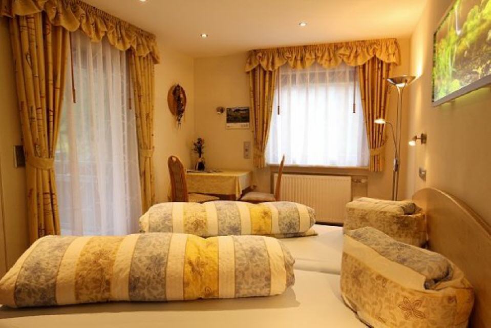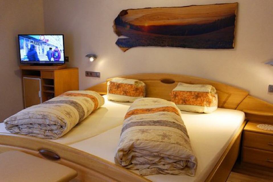 Die modern eingerichteten Doppelzimmer sind neben Dusche und WC, zusätzlich mit Fön, Kosmetikspiegel, TV, Wecker, Gästekühlschrank und Sitzecke ausgestattet. Ein Großteil der Zimmer verfügt über einen möblierten Balkon. Auf Wunsch bieten wir Ihnen auch ein Dreibett- oder Einzelzimmer an. Zudem steht Ihnen kostenloses WLAN zur Verfügung. Im Preis beinhaltet ist ein reichhaltiges Frühstück, die Kurtaxe wird gesondert berechnet.