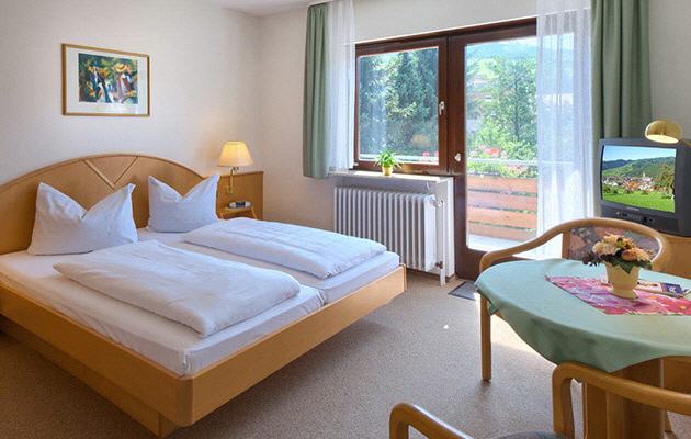 Wir bieten geschmackvolle Komfortzimmer im Landhausstil mit Dusche, WC, Fön, Sat-TV, Radio, Telefon, Safe und Balkon sowie Standardzimmer als DZ oder EZ mit Dusche, WC und Balkon. Neu haben wir 2 urgemütliche Komfort-Ferienwohnungen im Schwarzwälder Stil (wahlweise auch als Suiten buchbar). Von den Balkonen genießen Sie einen herrlichen Blick auf die Berglandschaft. Bild antippen!