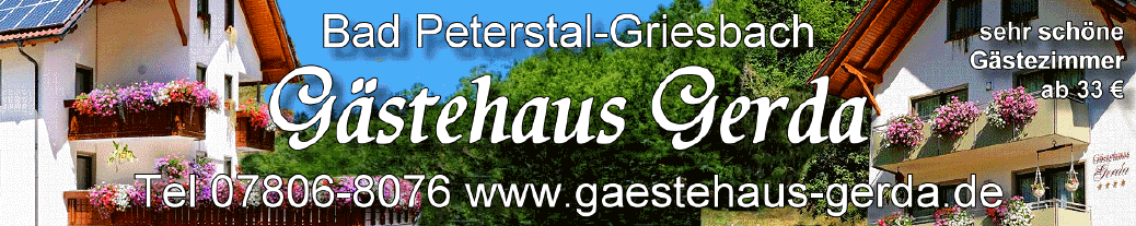 Gemütliche und schöne Ferienwohnungen und Hotels in Bad Peterstal-Griesbach im Ortenaukreis. Mieten Sie eine komfortable Ferienwohnung oder ein Hotelzimmer in Bad Peterstal-Griesbach in der Ortenau im mittleren Schwarzwald direkt und günstig beim Gastgeber. Wir wünschen schöne Ferien sowie einen erholsamen Urlaub!