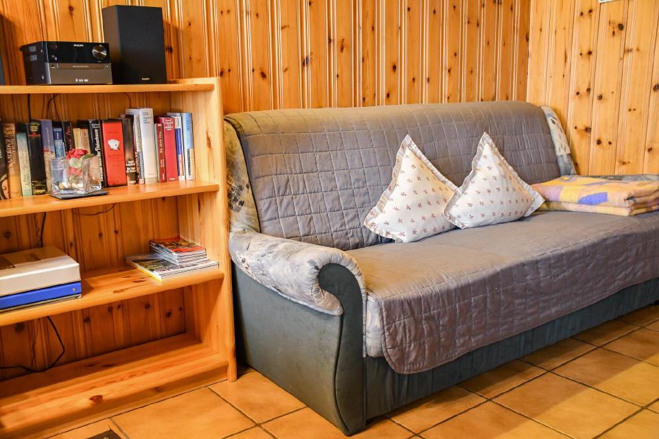 Die Wohnung (Erdgeschoss) ist sehr großzügig angelegt (ca. 70 qm) und bietet Platz für bis zu 4 Personen. Beheizt wird die Wohnung über einen mit Holz befeuerten Kachelofen, welcher der Wohnung eine ganz besondere Atmosphäre verleiht. Die Wohnung besteht besteht aus einem großen Wohnzimmer, Küche, Bad mit Dusche und WC, zwei Doppelzimmer und einem Stockbettzimmer. Zur Wohnung gehört eine Terrasse mit einer Sitzgarnitur, Gartenmöbel sind auch vorhanden. Ein TV-Gerät mit Satellitenanschluss steht zur Verfügung.